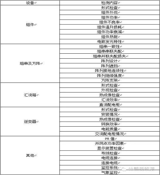 其次,通过完整的光伏电站的检测方案对项目技术质量水平做出评价。其主要包括如下三个方面:设计评估、光伏系统设备检测和工程施工质量检查。