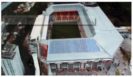 作为压轴大戏,必须介绍一下凯泽斯劳滕球场。2006德国世界杯之际,该球场进行了整体改造,场馆顶上装上了总装机容量1兆瓦的太阳能光伏发电系统,是当时世界上最大的足球场太阳能屋顶发电工程。