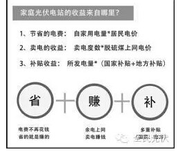 光伏发电,利国利民,业主投资可以用电不花钱还能赚钱,对国家来说更是为节能减排事业做出重要贡献。随着国家对分布式光伏发电政策扶持力度不断加大,分布式光伏发电开始走家入户。光伏发电既可以解决自用电,又可将用不完的余电上网卖给电网赚钱,用自己的屋顶,安装太阳能发电站,享受免费的阳光,免费用电,还可以拿国家的补贴。
