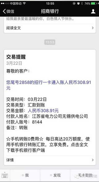 如上文国家发改委通知中规定的,家用光伏电站业主的补贴款是由国家的可再生能源发展基金支付,由电网企业转付,所以补贴收益是电网打给业主,具体方式各地略有区别,但一般情况下应该是在跟电网签合同的时候,会在合同上注明业主的银行卡号,定期由电网打到业主的这张银行卡里。如下图所示。