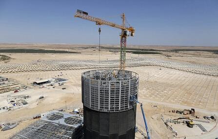 镜子用于聚集太阳光线,它们能像太阳花一样,根据太阳的移动路径,调整朝向。阿沙利姆塔远远看去,就像一座大灯塔。它的高度达到了240米,是世界上目前最高的太阳能塔。据了解,该项目将于2017年年底竣工,其发电电量将满足以色列12万户家庭的用电需求。