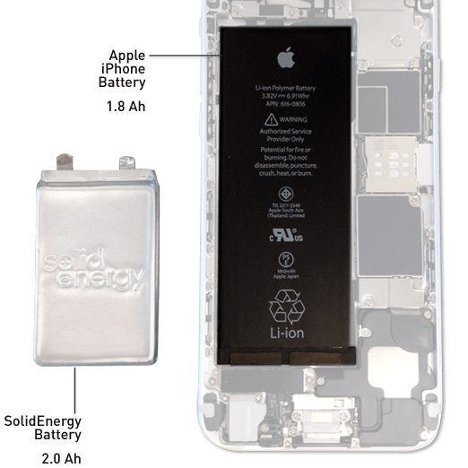 但是SolidEnergy Systems公司的这款新型锂金属电池攻克了以上难题,他们开发了一种新的固液混合解决方案。为了防止与传统的电解质溶液反应,他们在锂金属表面包裹了一层薄薄的固体导电物质,然后又对传统电解质进行了化学改造,在保证导电的前提下降低了其活跃性,并重新设计了电池结构,改善了正负极之间的隔离层材质,使得锂金属在保证离子携带数量的同时可以不与电解质产生额外的化学反应。在确保可以反复充电和安全性的同时,电池电量也得到了成倍提高。