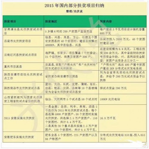 2015年国内部分省市扶贫项目归纳