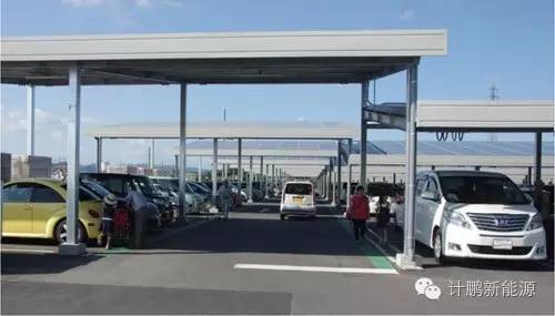 近日,日本枥木县佐野市建设的将车棚与光伏相结合的车棚型光伏电站已经竣工,总共为350个车位,装机容量约为1.1MW。在钢柱上安装折板棚顶,上面固定了电池板。