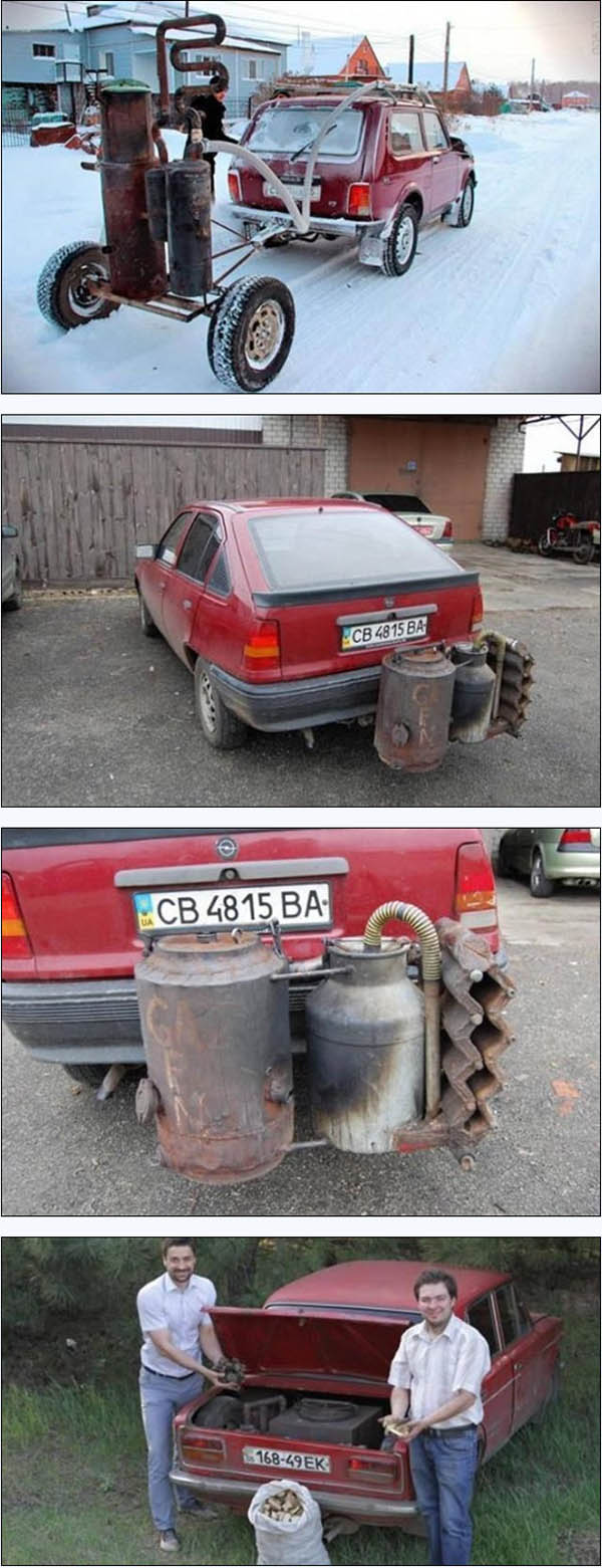 更令人惊讶的是,两人将这种燃木动力系统制作成了各种形态,有拖车式的、有车尾外挂式的,还有集成在后备箱当中。