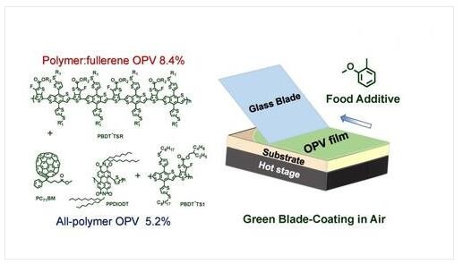 由美国北卡罗莱纳州立大学和中国科学院连手组成的研究团队,开发出一种以半印刷式塑料制造的有效率太阳能电池。这种制造方式无需使用对环境有害的卤素溶剂,而是采用一种对人体无毒无害的常见食品调味料——邻-甲基苯甲醚(o-MA)。