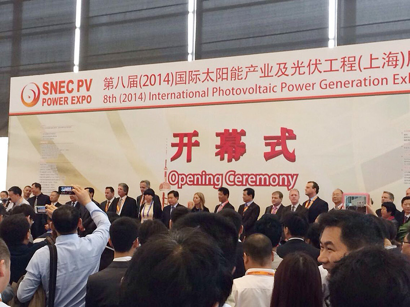 2014520是很多情侣纪念仪式的大好日子,同时今天也是我们硕日上海光伏展的第一天,对于这次亚洲光伏展,公司给予高度重视,不论从展台设计到现场活动的策划,领导都是亲力亲为,给予了很多建设性意见。你们瞧,用心付出终有回报,展会第一天硕日展台就集聚了很高的人气,门庭若市,人头攒动。