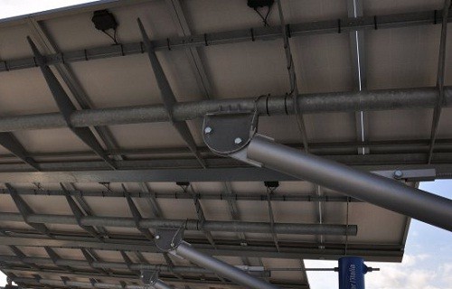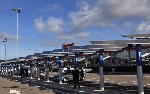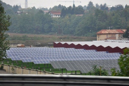 意大利米兰往佛罗伦萨去的高速公路一个服务区里的光伏电池群。
