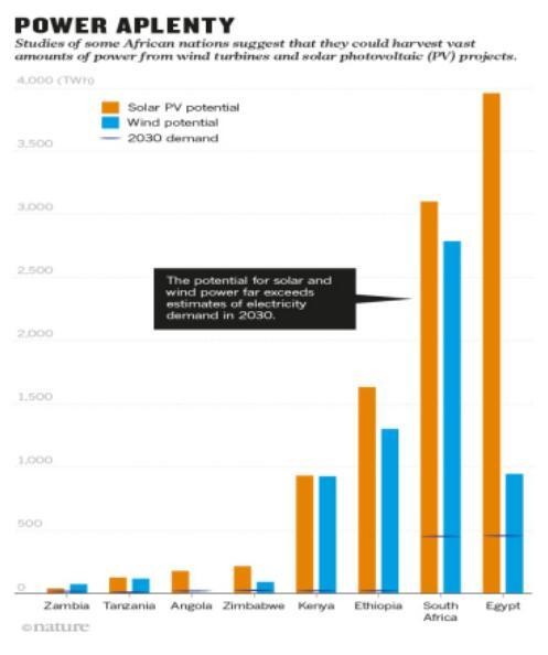 图3 非洲国家2030年对风能和太阳能的需求预测