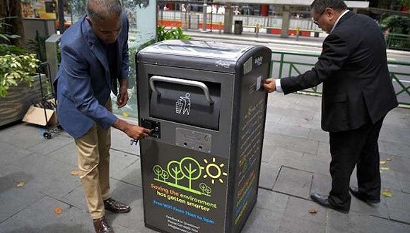 最近,新加坡最著名的商业街乌节路(Orchard Road),就上岗了一批智能垃圾桶——靠太阳能驱动,能将垃圾进行压缩处理。装满以后,可以自动清洁人员发送信息。更神奇的是,这批垃圾桶还装有WiFi,可以辐射周围30米的距离。人们享受WIFI的同时,也会收到附件商家的广告。