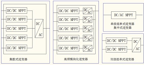 中国光伏市场的爆发,促进了光伏逆变器的发展,各种技术层出不穷。目前使用的有集中式逆变器,单级组串式逆变器,双级组串式逆变器,集散式逆变器,高频模块化逆变器,MPPT的技术也是多种多样。