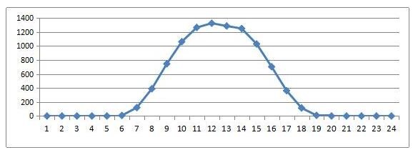 下图1为该地区逐时出力的年平均值,即对365天的24小时逐时出力求平均。