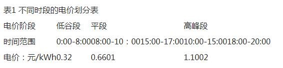 图1为经过数据处理过的光伏年均出力曲线和逐时电力负荷曲线,从图可知,用电负荷基本上比较稳定,处于400kW到500kW之间,光伏年均出力随太阳辐照而变化,可达到1200kW以上,因此远大于用电负荷,光伏出力曲线和用电负荷曲线交叉部分的面积为余电上网电量,其他时段光伏出力均被企业自身消纳,根据12个月的峰谷平电费清单以及节假期天数,计算峰谷平时段的用电平均负荷。