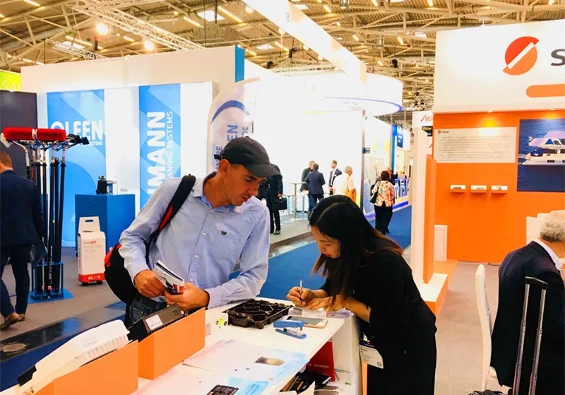 现场人群涌动,来自世界各地的客户正在了解硕日产品