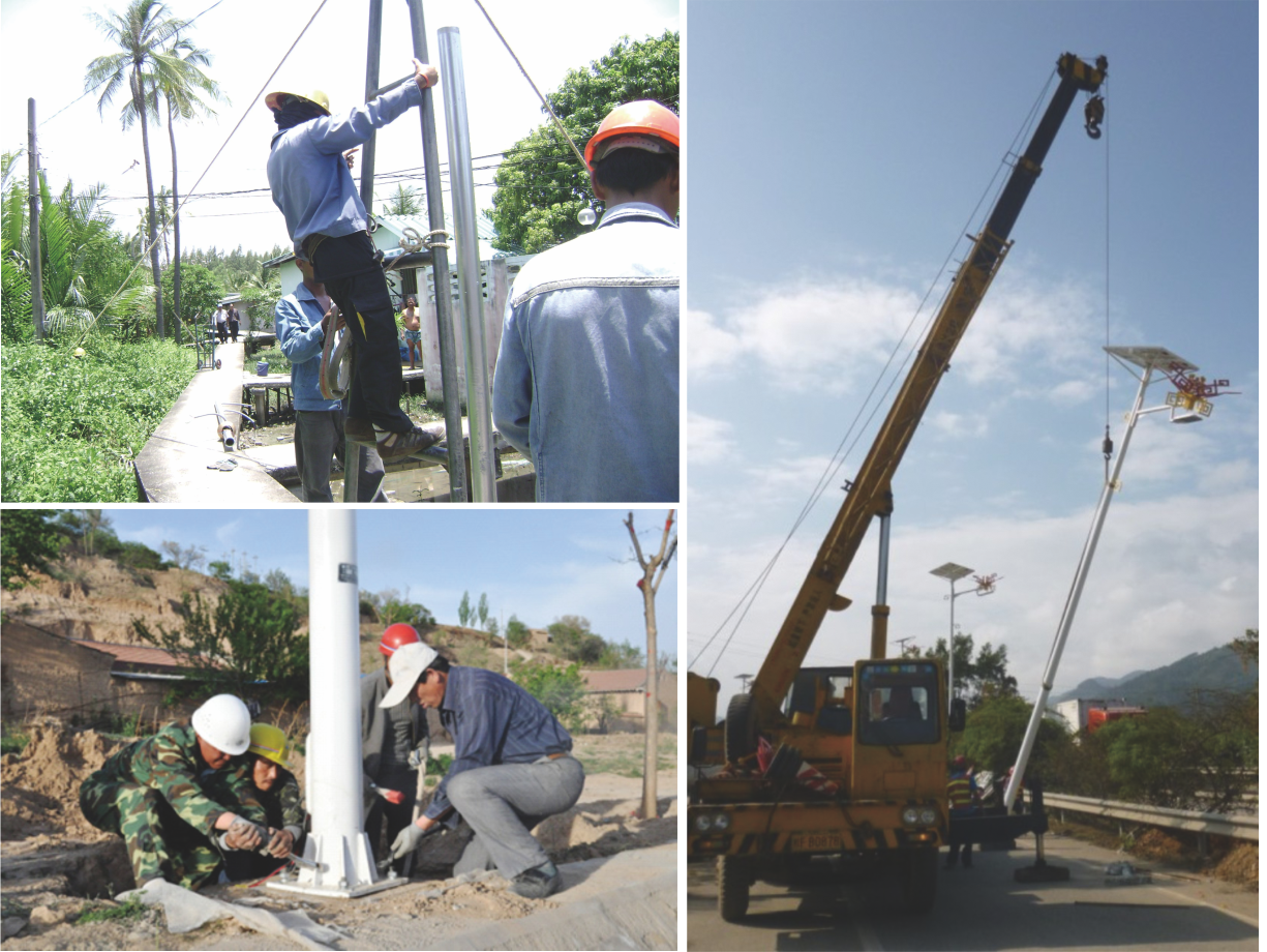 1.安装便捷:集电池板、光伏板、智能灯架等安装一体化,不需铺设电缆,只需固定水泥基座即可;