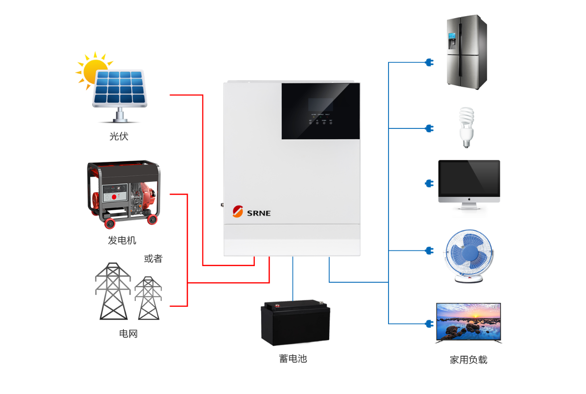 HF4850U80-H支持美标5KW系统应用及户外50A美标插座,PV开路电压为500V,交流输出电压为120V,光伏、市电均可激活,市电充电电流40A,光伏充电80A,混合最大充电80A,除了以上常规的参数亮点外,更让人眼前一亮的是能够兼容100V、105V和110V的电压,只需简单的设置,即可完美适应于日本市场,达到一机多用的效果。