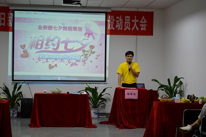 七夕情人节之际业务部举办了一场“情人KISS大赛”。比赛一开始各队喊出自己爱的宣言,爱情宣言完毕各队参赛人员都按照比赛规则作出了爱的KISS姿势。姿势各种各样。大家就那样久久的伫立在那里,颇有一种“山无凌,天地合,才敢与君绝”的气势。比赛进入白热化的阶段。